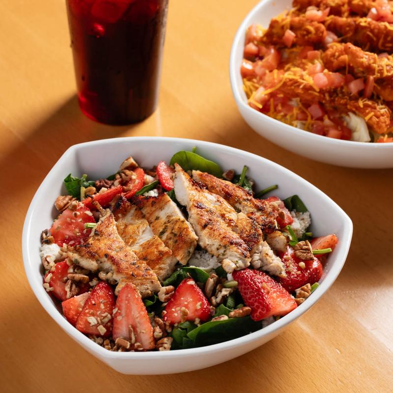 Served with a biscuit and choice of two: soup, Salad, Potato, or Fried Okra | Substitute Fresh Fruit +$2.99 | Upgrade Sweet Potato Fries +$2.79