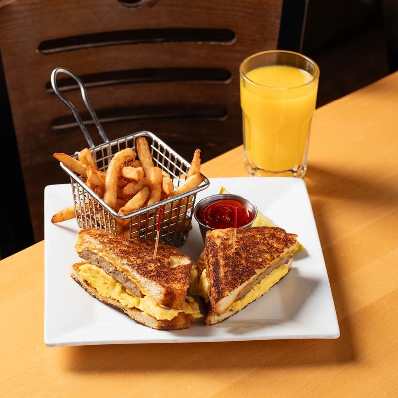 Served with Monterey and Cheddar Cheeses, Hash Browns or Grits, and a choice of Biscuit, Pancake, or Toast. Substitute Fresh Fruit + $2.99