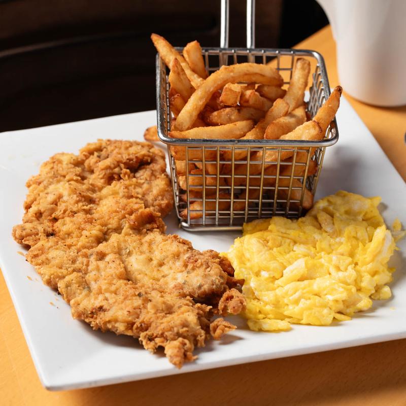Served with Hash Browns or Grits and a choice of Biscuit, Pancake, or Toast. Substitute Fresh Fruit +$2.99